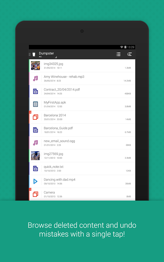 La grafica semplice e pulita aiuta anche il recupero dei file con estrema facilità. E' disponibile una versione gratuita ed una a pagamento, 2.99 euro, che permetterà di non visualizzare più i fastidiosi banner pubblicitari. Dunque, anche se molto limitato, Dumpster permette di avere un pratico cestino su Android da usare in caso di emergenza.
