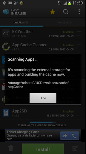 Il programma effettuerà una scansione della memoria del vostro cellulare alla ricerca di file APK installabili sul vostro smartphone in mod da poterli installare facilmente e velocemente sul vostro Smartphone Android in modo del tutto automatico.