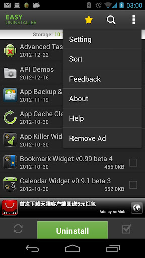 Ecco un'applicazione che permette una facile disinstallazione delle applicazioni. Easy Uninstaller è la più semplice ed efficente applicazione software della disinstallazione. L'app permette di disinstallare le Applicazioni in pochi e sempli passi rimuovendo tutti i file di installazione e temporanei presenti nel tuo Smartphone.