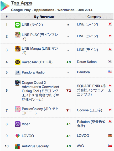 Per quanto riguarda la categoria con le app che guadagnano di più, troviamo sul podio ben tre app LINE con LINE, LINE Play e LINE Manga, che sicuramente vincono questa battaglia per via dell'enorme incidenza nei paesi asiatici.