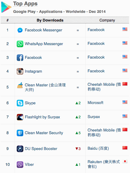 Se la categoria giochi è dominata dai soliti noti, anche nel mondo della app domina una sola categoria, quella social come Facebook Messenger, WhatsApp e Facebook ai primi tre posti mentre al quarto e quinto ci sono Instagram e Clean Master.