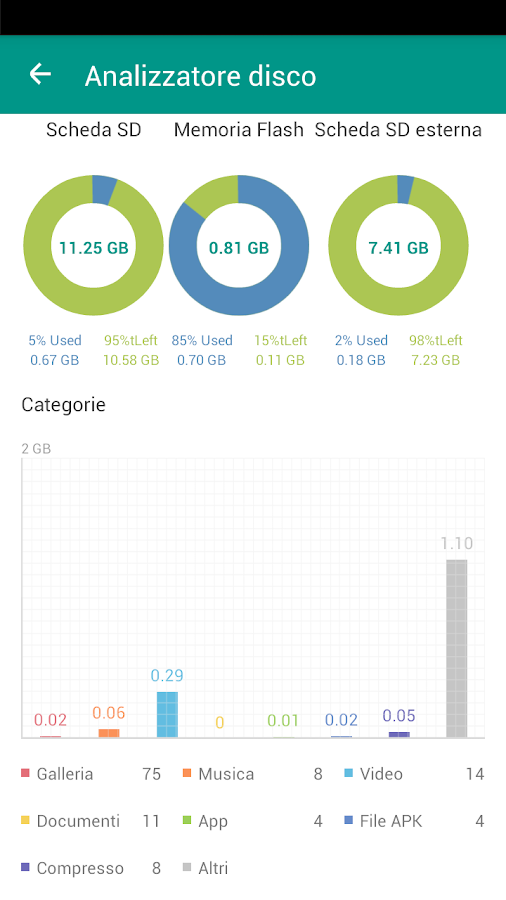 - Categorizzazione automatica dei file: galleria, video, musica, e-book, documenti, app... I tuoi file in ordine.