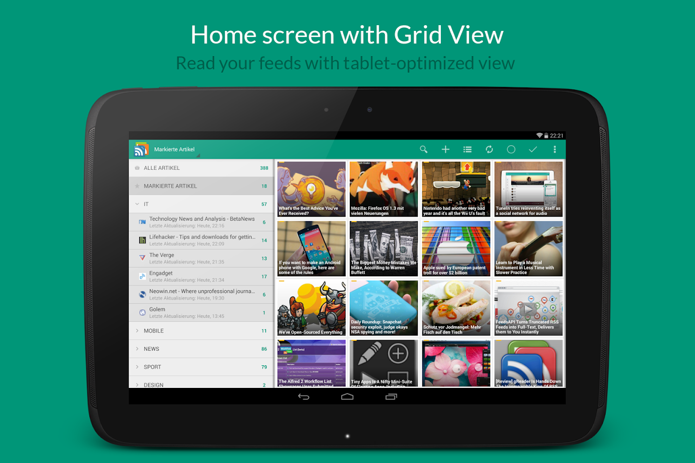 gReader è un lettore di feed rss semplice, veloce ed intuitivo per Android. gReader supporta i temi, i podcast e la lettura offline. Leggi tutte le notizie tramite il miglior aggregatore RSS per Android. Lo avevo abbandonato per diversi anni, ma ora ho ripreso ad utilizzarlo dopo il down di feedly e devo dire che gReader Pro è migliorato tantissimo.