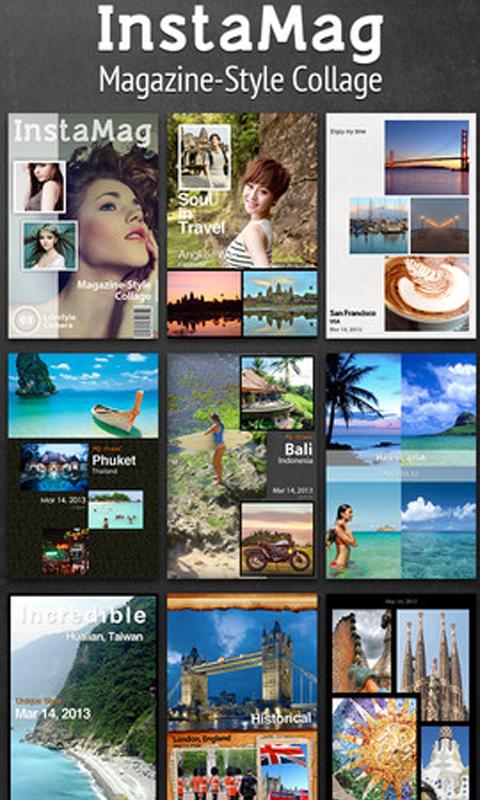 Andy Warhol prevedeva un futuro con almeno 15 minuti di celebrità per tutti. Se volete diventare famosi ed essere pubblicati in prima pagina sui maggiori magazine mondiali allora InstaMag è l'applicazione che fa per voi. Creare spettacolari fotomontaggi con il vostro volto stampato in prima pagina è sicuramente il sogno di tutti e InstaMag Magazine Collage è l'applicazione perfetta per tutti i maniaci del successo.