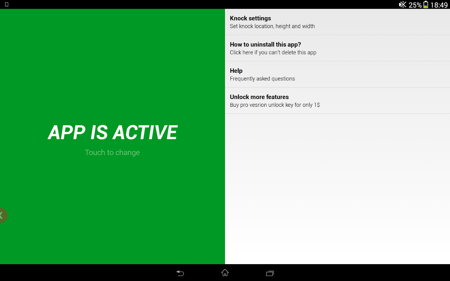 Knock Lock porterà la funzione tap to wake sui dispositivi Android compatibili e vi permetterà di spegnere lo schermo con un doppio tap senza usare il pulsante d'accensione. Diverse sono le impostazioni come la selezione dell'area di azione del nostro doppio tap come la parte inferiore o quella superiore del display ed una volta abilitata l'area sarà sufficiente fare doppio tap per spegnere il display del nostro smartphone.In pratica Knock Lock abiliterà un pulsante virtuale che sarà sempre in primo piano per abilitare lo spegnimento dello schermo in modo facile e veloce solo che l'unico inconveniente che questo pulsante invisibile sarà sempre in primo piano e dunque dobbiamo impostarlo in una zona del display non utilizzata come un laterale o sulla barra superiore vicino alla barra delle notifiche.