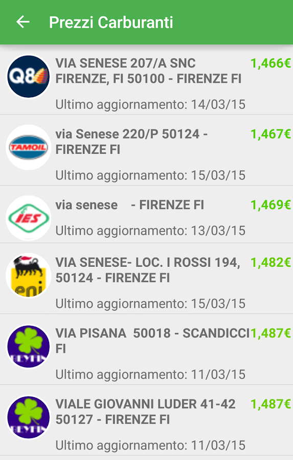 Si possono visualizzare i distributori su una mappa o anche su una comoda lista in modo da consultare immediatamente quelli nei dintorni rispetto alla tua posizione o navigare virtualmente in tutta Italia alla ricerca dei prezzi migliori.