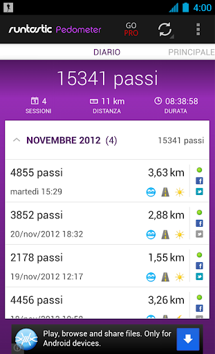Runtastic Pedometer Pro Gratis: Registra i passi durante le tua camminate con Statistiche e velocità Tutti dovrebbero fare almeno 10.000 passi al giorno, e tu, quanto cammini? Runtastic Pedometer tien...