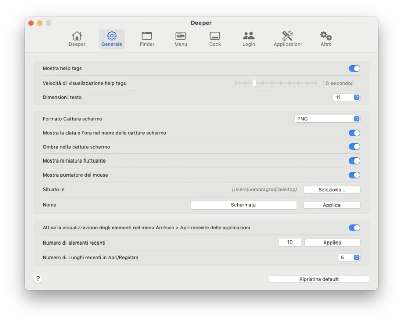 Deeper è un programma leggero, gratuito e facile da usare che permette di abilitare tutta una serie di “funzionalità segrete” di macOS tramite un'intuitiva interfaccia utente.