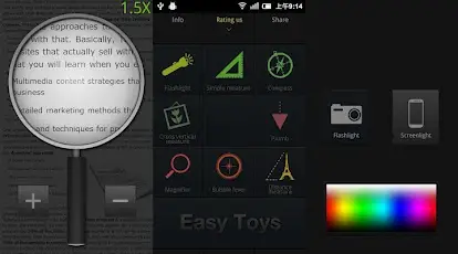 Si tratta di un programma veramente ottimo, che vi consente di avere sempre con voi degli utilissimi strumenti come la torcia, una lente di ingrandimento, un righello, una bussola ed altro ancora.