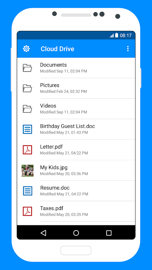 Con Amazon Cloud Drive puoi accedere con facilità a tutti i documenti, i fogli di calcolo, la musica, le foto e i video archiviati in Cloud Drive con il tuo dispositivo Android, tutto con un'unica app. Visualizza l'anteprima dei tuoi file all'interno dell'app e condividi file e cartelle. Iniziare è facile grazie al periodo di prova gratuito di 3 mesi. Con Amazon Cloud Drive puoi: