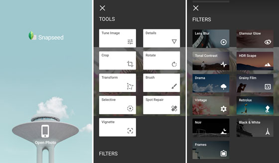 Snapseed è disponibile sia su Google Play Store che su Apple Store ed una volta installato sullo smartphone avremo accesso a tantissime funzioni e filtri per modificare e personalizzare le nostre foto, immagini o scatti fatti con lo smartphone. Infatti tra i centinaia di applicazioni che permettono di aggiungere effetti alle nostre immagini e di renderle perfette sicuramente Snapseed è tra i migliori programmi per smartphone.