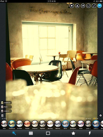 Troviamo 30 filtri, alcuni con più di una variante, 24 pellicole e 16 cornici. Possiamo anche impostare dei preferiti così da poterli raggiungere facilmente tramite l'icona della stella.