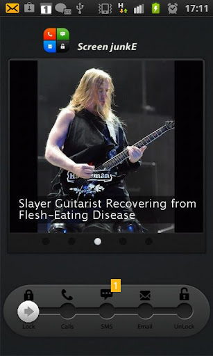 Screen junkE fa ancora di più, oltre alle solite funzioni di sblocco, notifica e accesso diretto alle Mail, SMS e Chiamate ricevute tramite lo Slide sull'icona, visualizza le Anteprime delle News recuperate da dei Feed RSS o delle Foto dalla Galleria e tramite il Tap sulla notizia si aprirà direttamente la Notizia da leggere.