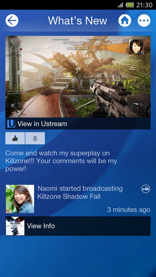 È dunque tutto pronto per il debutto della piattaforma di casa Sony, che a partire da venerdì andrà a scontrarsi con il rivale Xbox One di Microsoft. L’interfaccia dell’app ufficiale riprende lo stile della dashboard di PS4, con un layout che punta tutto sulle tonalità di blu. Di seguito l’elenco completo delle funzionalità offerte. Va precisato che per sfruttarle tutte e senza alcuna limitazione sarà necessario disporre di un account iscritto al servizio SEN (Sony Entertainment Network) e aver registrato una PlayStation 4.