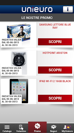 Presentato ufficialmente l'applicazione del negozio Unieuro per Android e anche per iOS che oltre a contenere i volantini nazionali, la ricerca del negozio Unieuro più vicino a te, la ricerca delle offerte migliori è anche presente una particolare sezione con le promozioni dedicate solo a chi ha installato l'applicazione sul proprio smartphone Android.