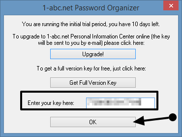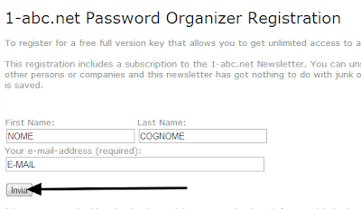 Sistema operativo supportato: Windows XP, Vista, 7 e Windows 8. Ottenere una licenza gratuita di 1-abc.net Password Organizer 6, andare in questa pagina e inserire il nome, il cognome e la vostra e-mail.