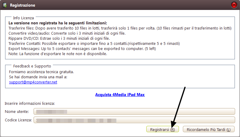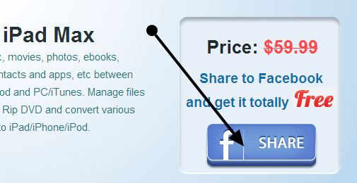 Per ottenere una licenza gratuita di 4Media iPad Max, andare in questa pagina, condividere questa promozione con Facebook, e inserire la vostra e-mail.