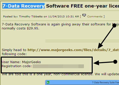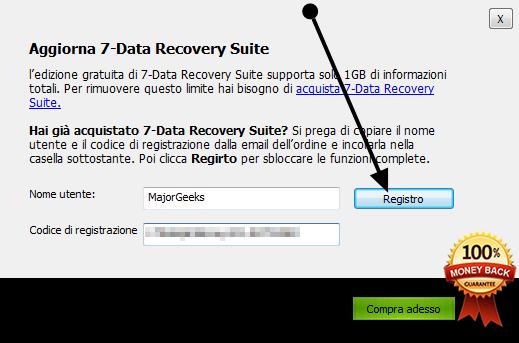 Per ottenere una licenza gratuita di 7-Data Recovery 2.3, andare in questa pagina, copiare il codice di attivazione e scaricare il software.