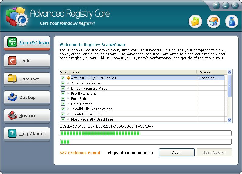 Advanced Registry Care è una suite per l’ottimizzazione e la manutenzione del registro di Windows. Ha un’interfaccia utente pulita, molto facile da usare, che aiuta a scansionare, pulire, riparare, deframmentare, salvare e ripristinare il registro di sistema. Supporta i sistemi Windows a 32-bit e 64-bit. È molto semplice da usare, potrebbe riuscirci anche un bambino.