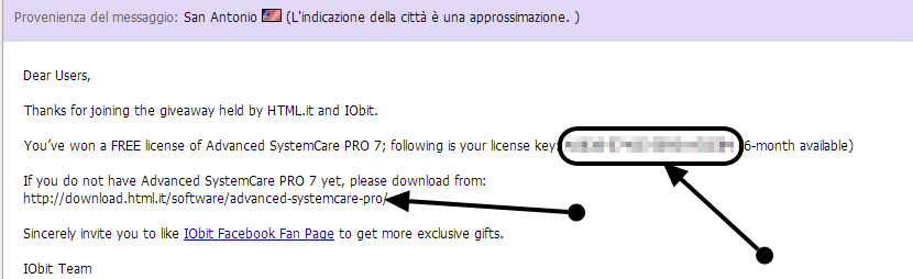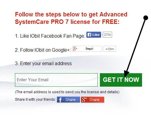 Per ottenere una licenza gratuita di Advanced SystemCare Pro, andare in questa pagina e inserire la vostra e-mail.