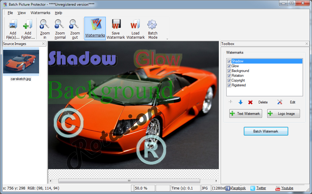 Vuoi sapere come fare per aggiungere il watermark alle tue foto con un watermark trasparente? Batch Picture Protector è la soluzione giusta per te. È in grado di aggiungere il watermark alle foto aggiungendo watermark visivi, che possono combinare testo, illustrazioni e loghi.