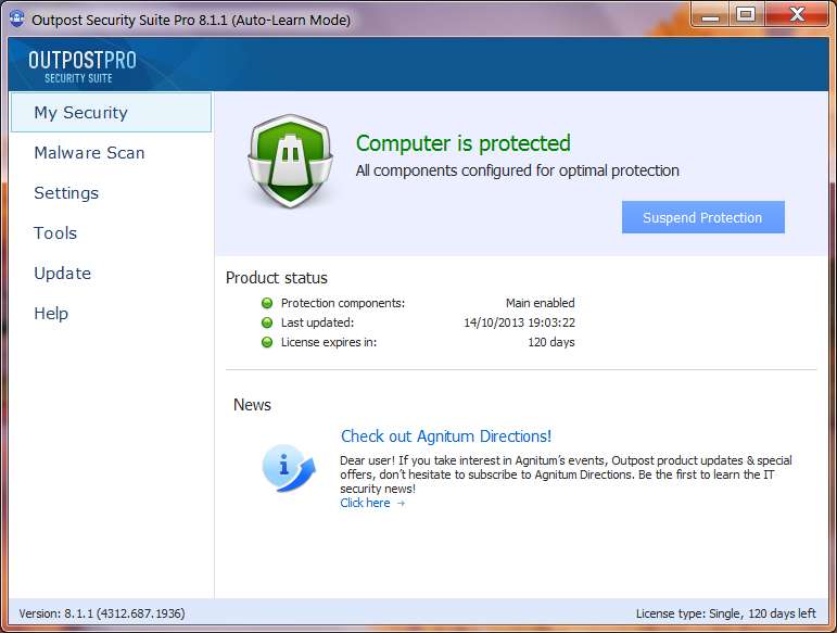Download Agnitum Outpost Security Suite Pro 8.1.1 (32 bit)