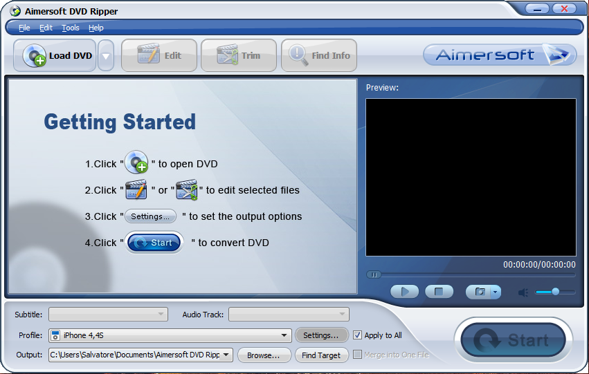 Aimersoft DVD Ripper è un software in grado di convertire DVD, DVD IFO, cartella DVD e ISO in diversi formati multimediali, tra cui MP4, AVI, ASF, MOV, M4V, MKV, WMV, DV, VOB, MPG, TS, TRP, DPG, 3GP, 3G2, FLV, F4V, SWF, ecc in modo da poter riprodurre il vostro DVD preferito sul vostro dispositivo portabile come iPod, iPod nano, iPod classic, iPod shuffle, iPod touch, iPhone 4, iPhone 5, iPhone 3G, iPhone 3GS, Apple TV, PSP, PS3, Xbox 360, General 3GP Mobile Phone, BlackBerry, Archos, Creative Zen, Zune, iRiver, Pocket PC, Smart Phone, PDA, Xoom, Galaxy S II, ecc