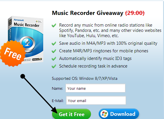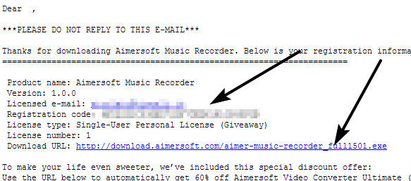 Per ottenere una licenza gratuita di Aimersoft Music Recorder, andare in questa pagina e inserire il nome e la vostra e-mail.