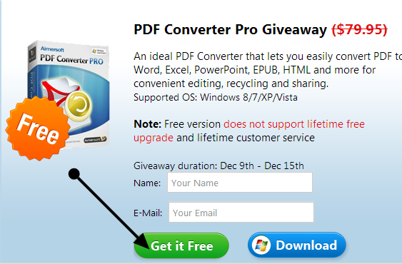 Per ottenere una licenza gratuita di Aimersoft PDF Converter Pro, andare in questa pagina e inserire il nome e la vostra e-mail.