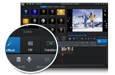 Con Aimersoft Video Editor è possibile creare filmati dall'aspetto professionale con effetti video, transizioni eleganti, musica di sottofondo e condividerli con il mondo istantaneamente.