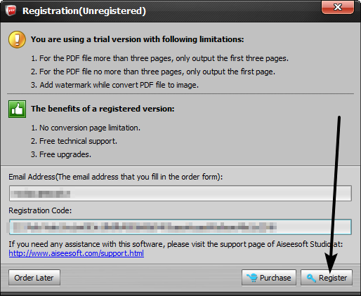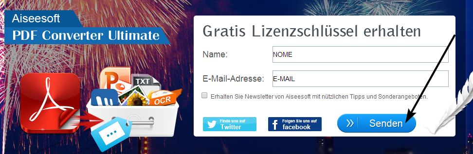 Per ottenere una licenza gratuita di Aiseesoft PDF Converter Ultimate, andare in questa pagina e inserire il nome e la vostra e-mail.
