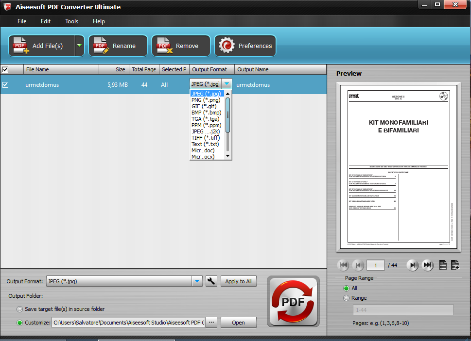 Per aiutare gli utenti a ottenere dei file personalizzati, questo software offre agli utenti numerose impostazioni di output. È possibile convertire tutte le pagine o soltanto alcune pagine definite dall'utente. E non è tutto, vi permette di convertire più file PDF in diversi formati di uscita in una sola volta.