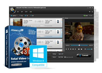 Aiseesoft Total Video Converter è uno dei migliori convertitori per video. Consente di convertire qualsiasi file video, come MP4, MKV, WMV, AVI, Quick Time MOV, DivX, MTS, M2TS, MXF/P2 MXF, MOD, H.264/MP4 AVC, WMV HD, ecc in altri tipi di file. Il supporto alle tecnologie di accelerazione hardware permette di convertire molto più velocemente i video rispetto ad altri convertitori.