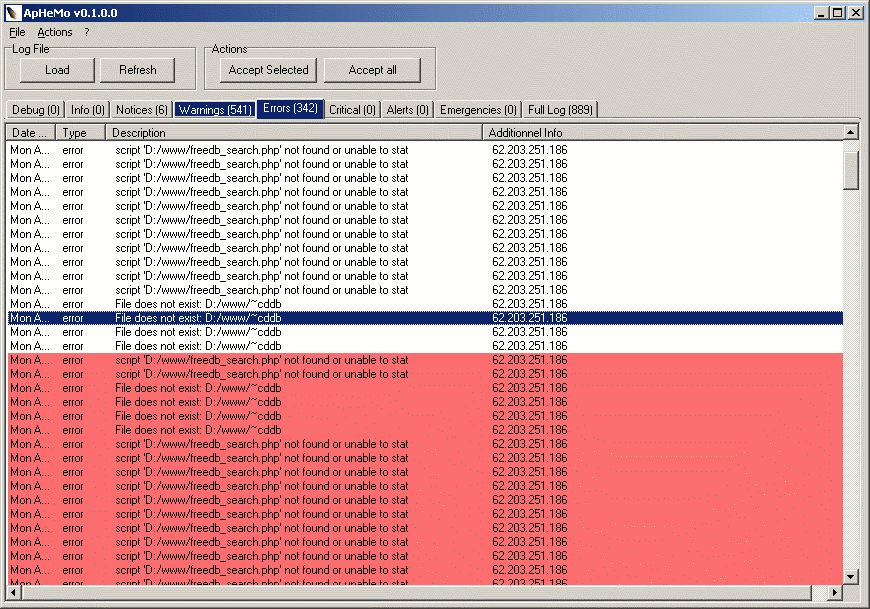 ApHeMo è un programma per monitorare lo stato di salute dei server HTTP Apache. ApHeMo consente agli amministratori di aumentare sicurezza e reattività dei propri server e rilevare facilmente gli attacchi hacker (scan, backdoor, ecc.). ApHeMo è un must-have per gli amministratori di server.