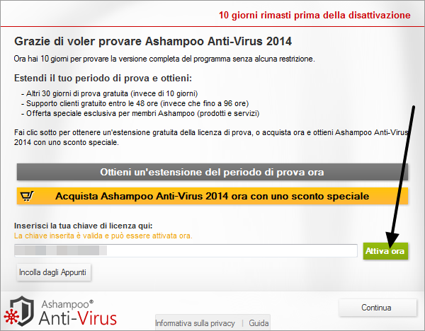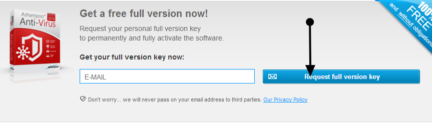 Per ottenere una licenza gratuita di Ashampoo Anti-Virus 2014, andare in questa pagina e inserire la vostra e-mail.