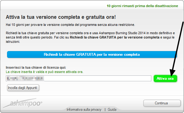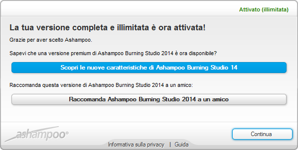 Per ottenere una licenza gratuita di Ashampoo Burning Studio 2014, andare in questa pagina.