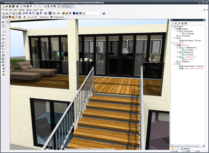 Ashampoo Home Designer Pro è un software professionale di progettazione 3D con cui è possibile progettare e arredare una stanza, un appartamento o anche una casa intera. Grazie ad esso, potrete realizzare i vostri progetti usando una vasta gamma di elementi e grandi cataloghi con oggetti, materiali e texture. Permette non solo di costruire la propria casa dei sogni, ma anche di progettare facilmente l’intera costruzione.