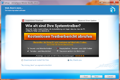Durante l'installazione, Ashampoo Movie Studio 2013 tenta di scaricare ed installare "Advanced Driver Updater". Se questo programma non vi interessa, scegliere No.