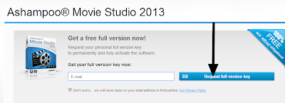 Per ottenere una licenza gratuita di Ashampoo Movie Studio 2013, andare in questa pagina e inserire la vostra e-mail.