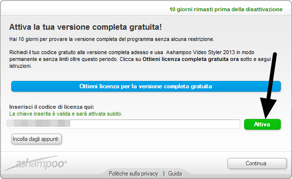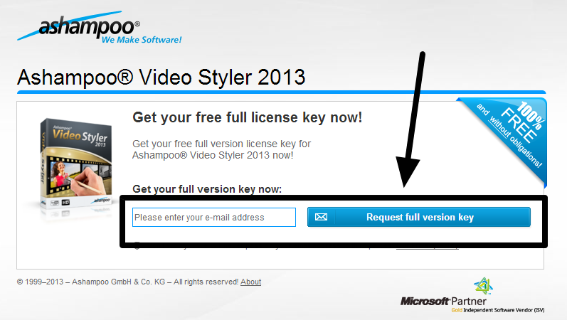 Per ottenere una licenza gratuita di Ashampoo Video Styler 2013, andare in questa pagina e inserire la vostra e-mail.