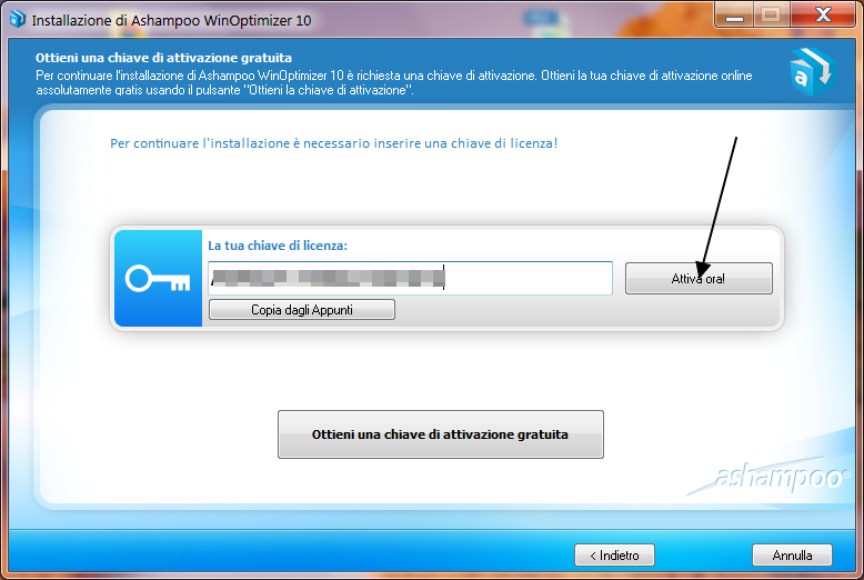 Nella pagina successiva, per gli utenti già registrati su Ashampoo, basta inserire la password. Per gli utenti non registrati, bisogna eseguire la registrazione.