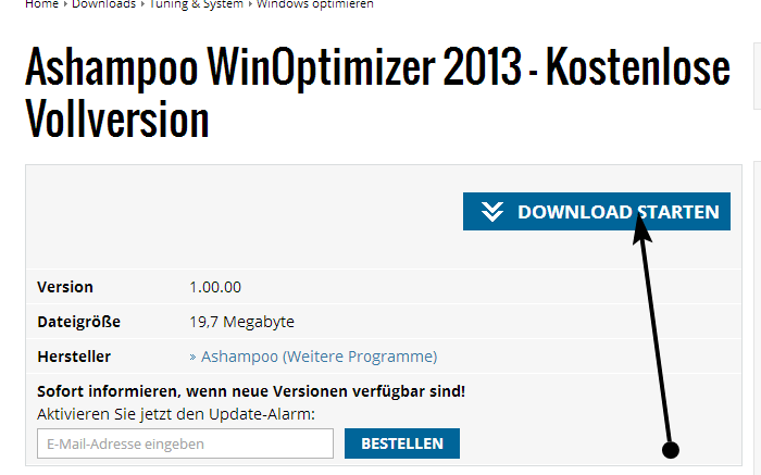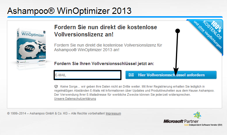 Per ottenere una licenza gratuita di Ashampoo WinOptimizer 2013, andare in questa pagina e scaricare il software.