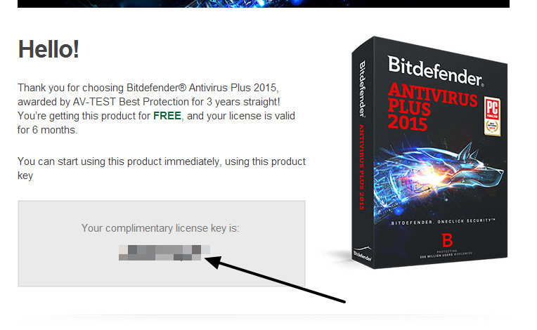 Immediatamente vi arriverà una e-mail contenente il codice di attivazione di Bitdefender Antivirus Plus 2015.