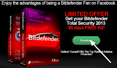Per ottenere una licenza gratuita di Bitdefender Total Security 2013 valida per 3 mesi, andare in questa pagina, cliccare Mi Piace e scaricare l’antivirus.