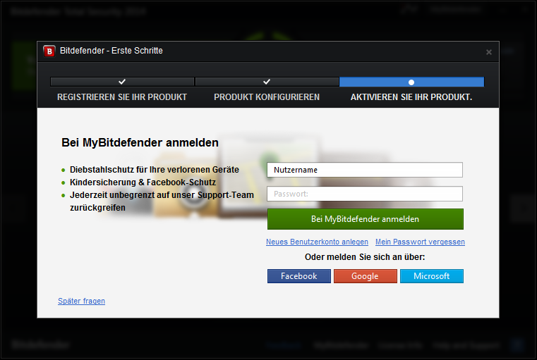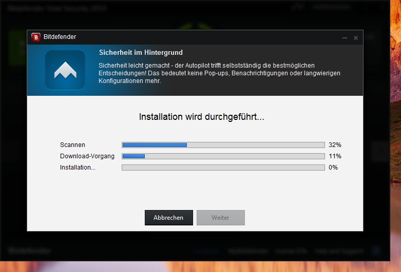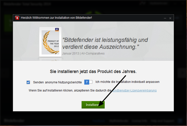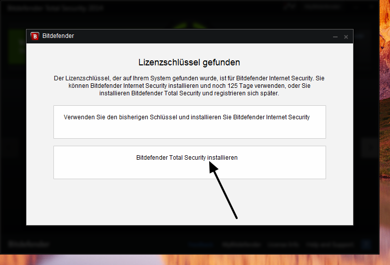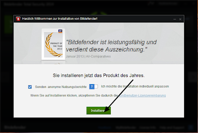 Per ottenere una licenza gratuita di Bitdefender Total Security 2014 valida per 6 mesi, per iniziare, andare in questa pagina e scaricare la versione tedesca di Bitdefender Total Security 2014 ( Il download iniziale è un piccolo installer che scaricherà il resto dei file di installazione).