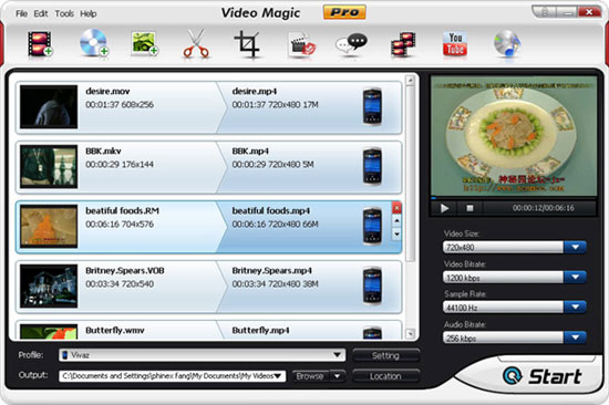 Blaze Video Magic fornisce una soluzione all-in-one per gli appassionati di video. Utilizzandolo, sarete in grado di convertire facilmente qualsiasi video in tutti i principali formati ad altissima velocità. Il programma permette inoltre di riprodurre tutti i video della propria libreria su qualsiasi piattaforma, include funzioni di editing video (come divisione, ritaglio, rotazione, unione, aggiunta di watermark, sottotitoli, ecc.), la possibilità di creare slide-show, scaricare video da YouTube e creare suonerie per iPhone gratis.