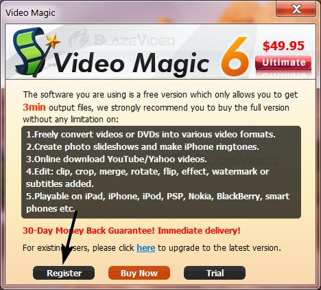 Blaze Video Magic Ultimate è un convertitore video che ti permette di convertire o strappare tutti i video o DVD in MP4, 3GP, AVI, MOV, WMA, ASF per guardare i vostri video preferiti su iPhone / iPad / iPod / PSP / HTC / Archos / Nokia, lettori multimediali o altri dispositivi portatili.