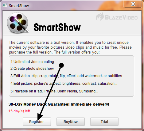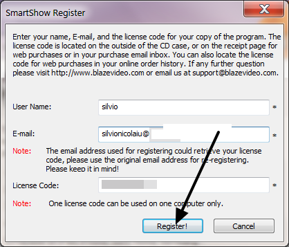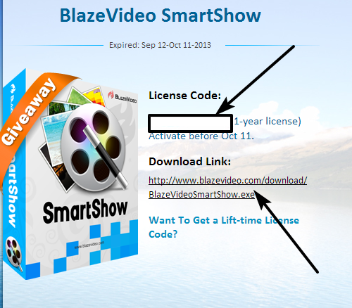 Per ottenere una licenza gratuita di BlazeVideo SmartShow, andare in questa pagina tra il 12 Settembre e l'11 Ottobre e quindi dovete attivare BlazeVideo SmartShow entro l’undici ottobre 2013 altrimenti il seriale non sarà più valido.