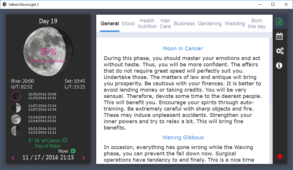 Calendario fasi lunari sul ComputerUn programma sorprendente di calendario con le fasi lunari. Si è dimostrato come la Luna influenzi a vita umana e la natura. Utilizzando questa app, chiunque sarà in...