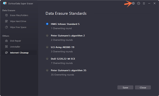 DoYourData Super Eraser is equipped with four data erasure methods based on different algorithms.
